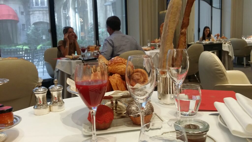 Jus de fruits, viennoiseries de Christophe Michalak, tout ça est divin.