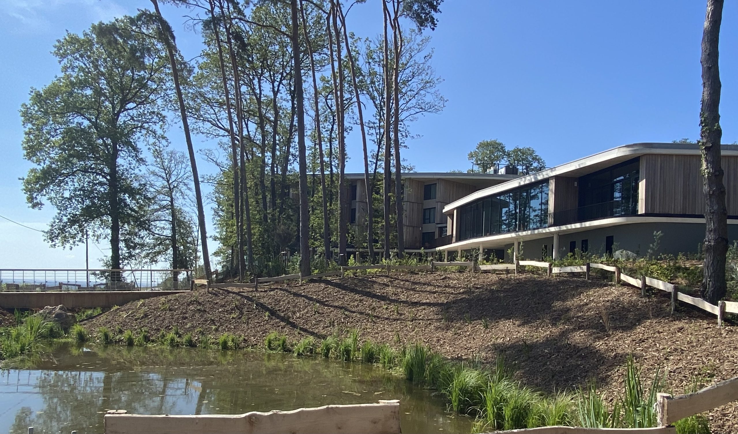 Le lieu séduit dès qu’on l’approche parce qu’il se fond dans les sommets de la forêt de Mutigny, au dessus d’un océan de vignes. Ce complexe hôtelier d’envergure est tapi dans des bâtiments de verre et de bois. Il comprend, sans en avoir l’air, 101 chambres et un SPA gigantesque, deux restaurants de 160 couverts, des salles de dégustation et séminaire. Cette emprise de près d’1,7 hectare s’est exercée sous condition sur un site protégé, donc jalousement surveillé.