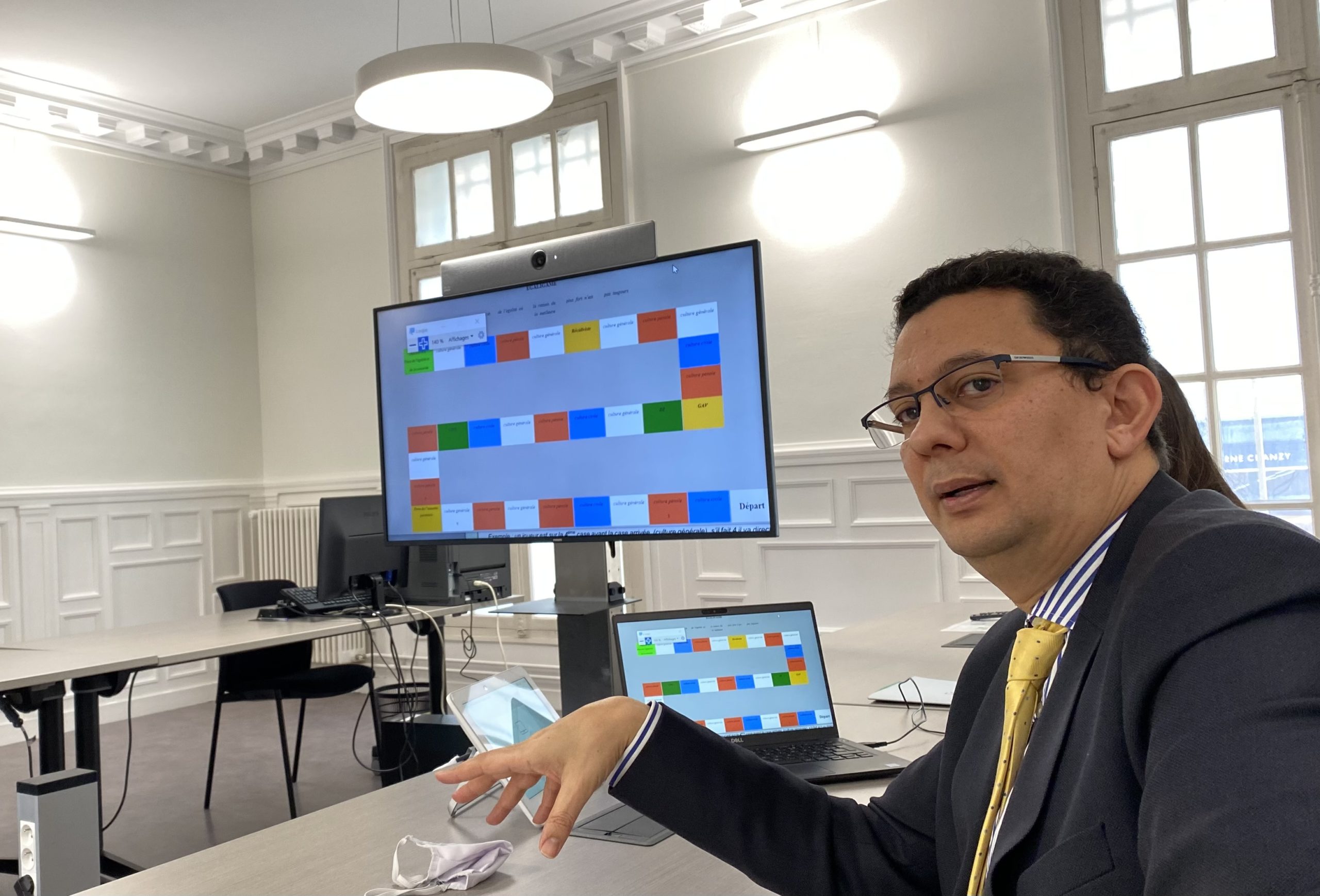Le parcours du jeu de loi s’affiche en quelques clics sur l’écran de l’ordinateur. Il suffit de lancer les dés pour avancer. A chaque case correspond une question, de culture générale, pénale ou civile.